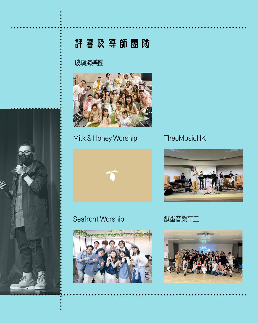 導師團隊會以「抽籤」形式、先後選出2個參賽單位作為其學員,再與學員一同預備音樂會、優化參賽歌曲,並分享事奉及敬拜的經驗,提升參賽者的音樂及靈命素養。